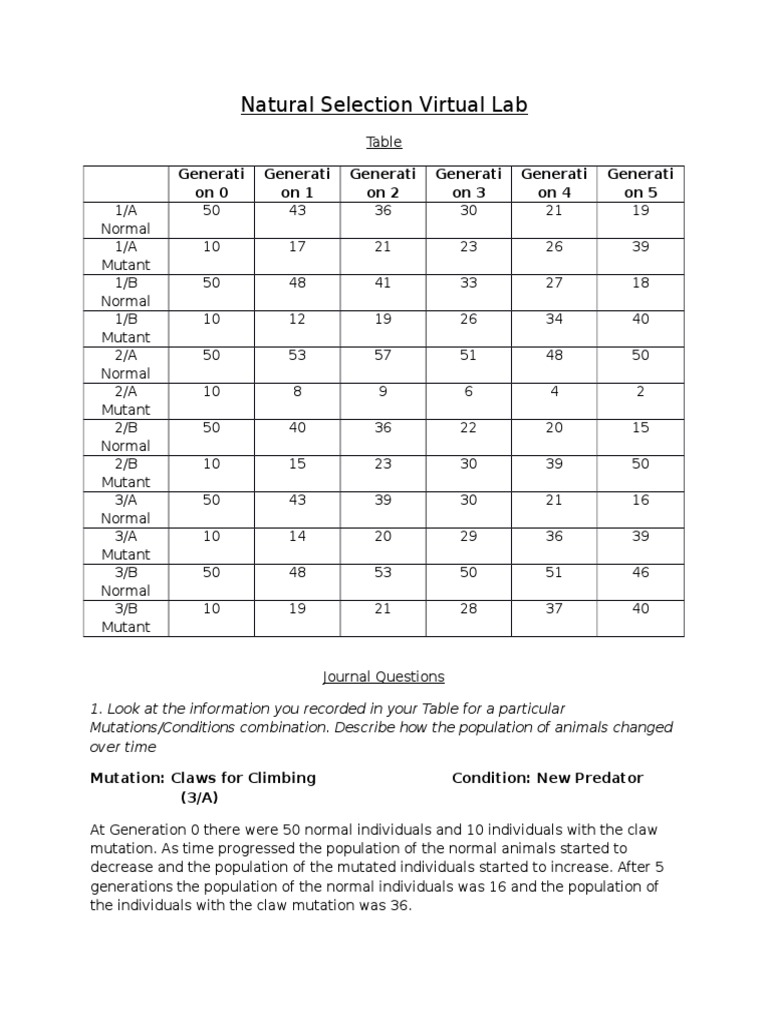 In this lab, the three flocks of birds changed in numbers between generation 1 and generation 3. Natural selection, variation, and random mutations. However, more sophisticated students may point out that natural. How could natural selection lead to evolution? Because of the traits that are passed down from generations, those with the colors.